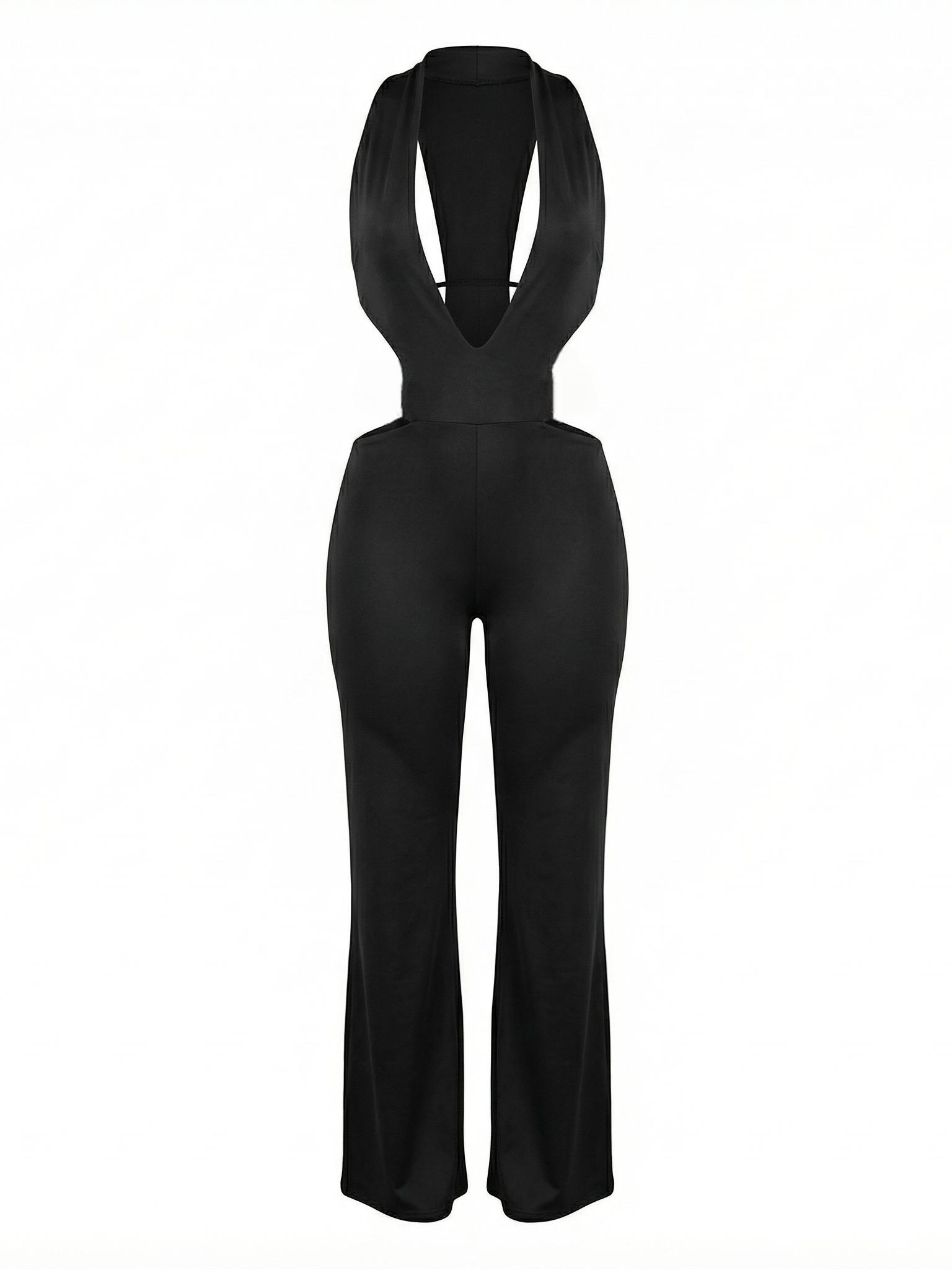 Black Deep Plunge Cutout Halter Neck Jumpsuit