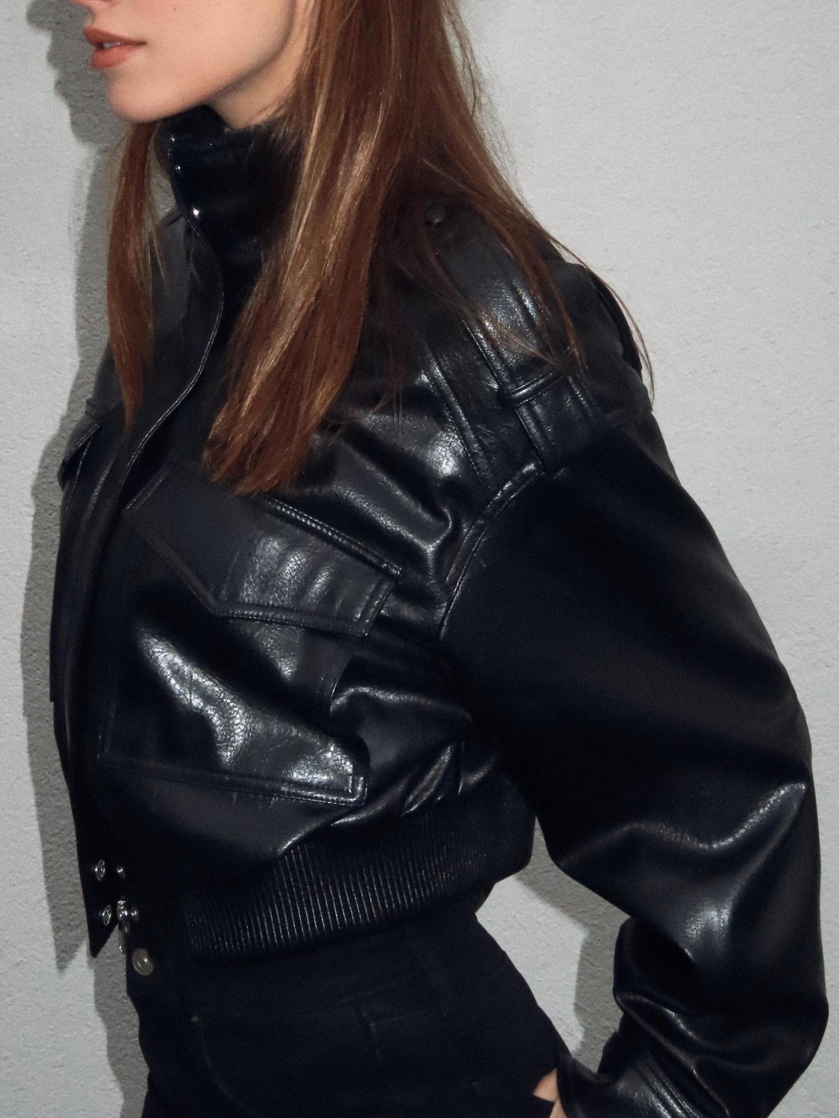 Jacket with a high neck and long cuffed sleeves, featuring shoulder tabs, flap pockets on the front, an elasticated hem, a tonal lining and a zip-up front hidden by a placket with snap buttons.