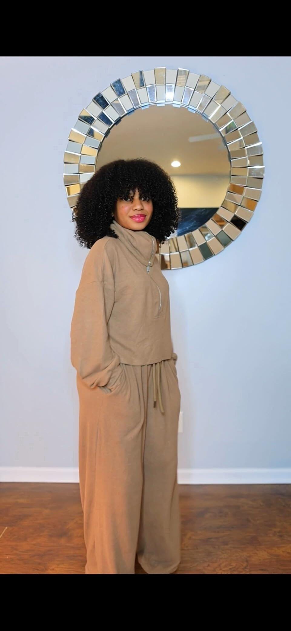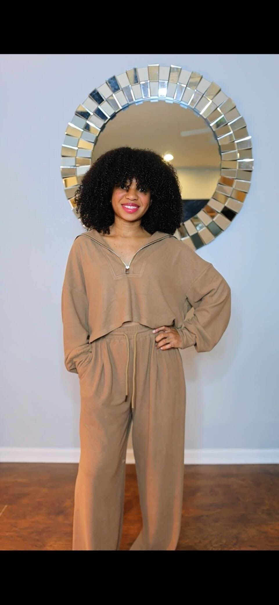 I love this set, it’s lightweight so it’s great for fall. It’s so soft too it honestly feels like I’m wearing pjs. I’m also on the taller side and the pants are the perfect length for me (if you’re shorter you can just fold the waistband over) I will definitely be buying other colors too. It’s also slightly cropped so it’s trendy!