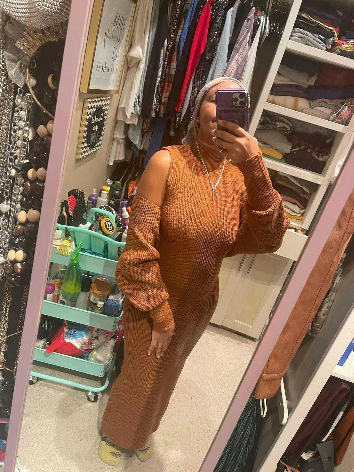 This is The Perfect Fall Dress – Chic & High Quality! The rust color is perfect for autumn, especially if your color analysis places you in the autumn family—the rich, warm tones really made me glow. The fit is incredibly flattering, smoothing out any lumps and bumps while keeping things classy with the perfect length. Plus, the quality is amazing—thick, well-made, and holds up beautifully in the wash. I get tons of compliments every time I wear it, and now I want it in every color!
