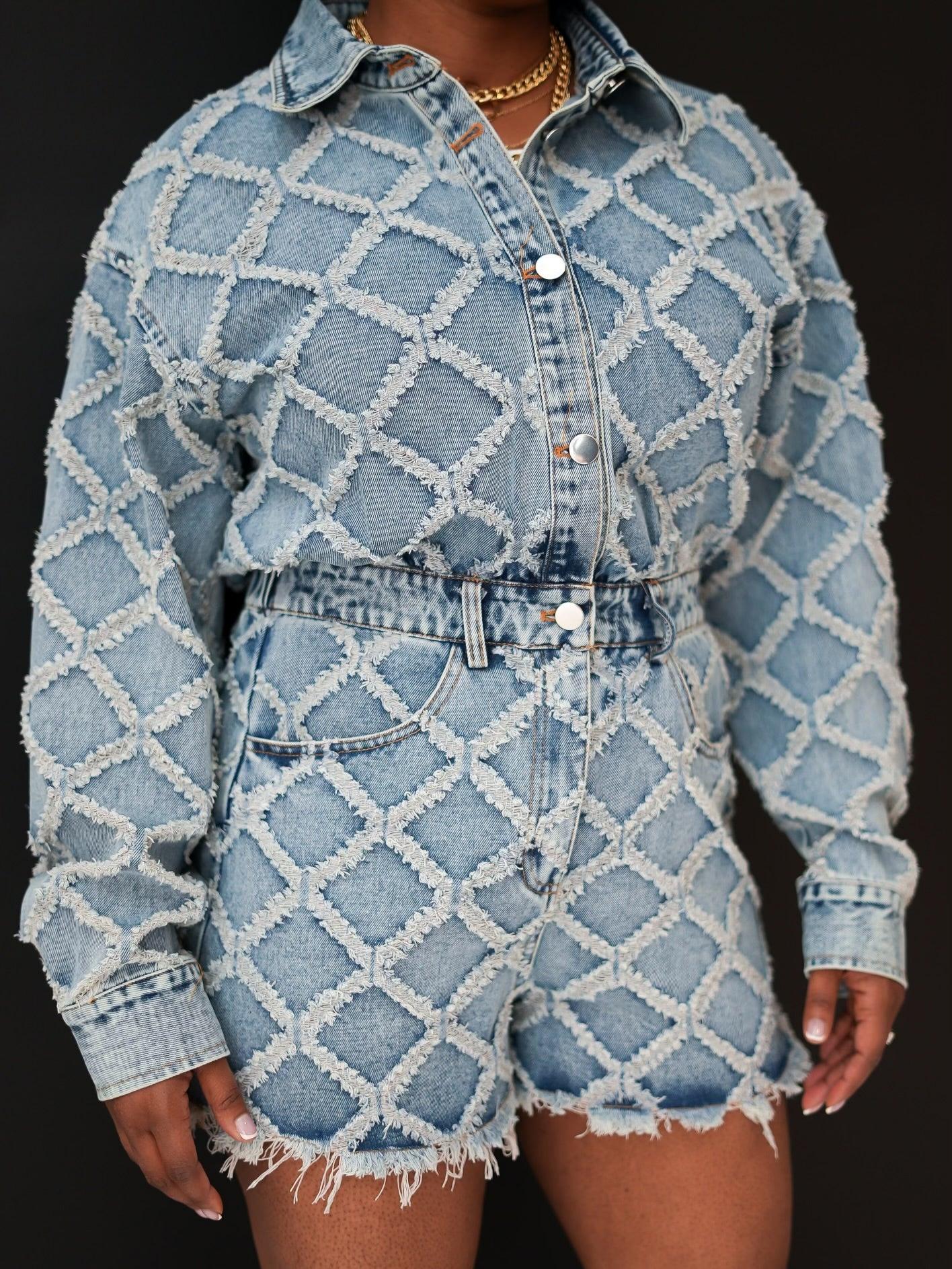Ready to rock in the Denim Dream Romper - where chic meets comfort. With a trendy distressed pattern and a stretchy waistband, this romper is versatile enough for any occasion. The relaxed fit will keep you comfy while you make a bold statement. Add your go-to accessories for an effortlessly Golden Chic look.