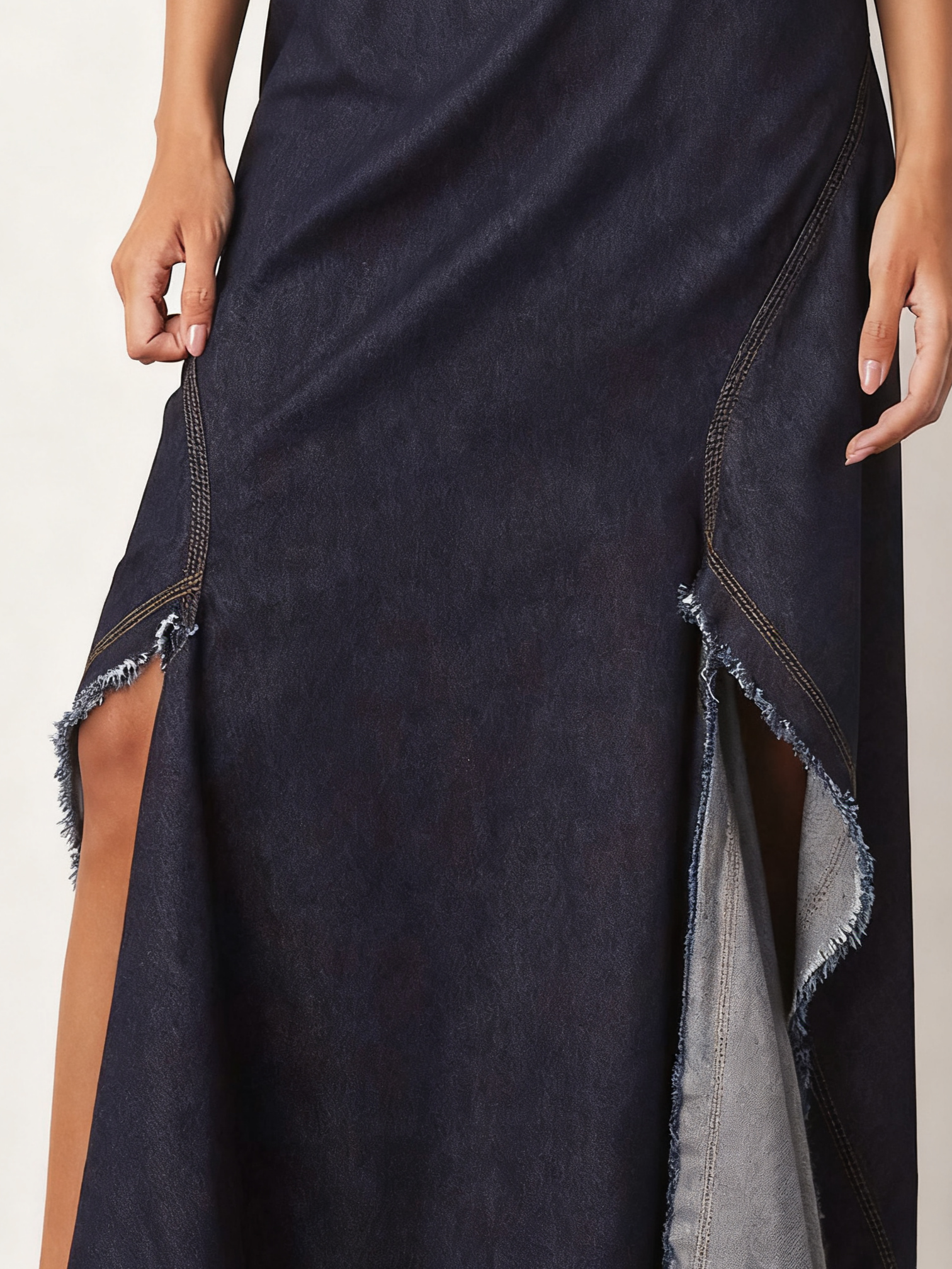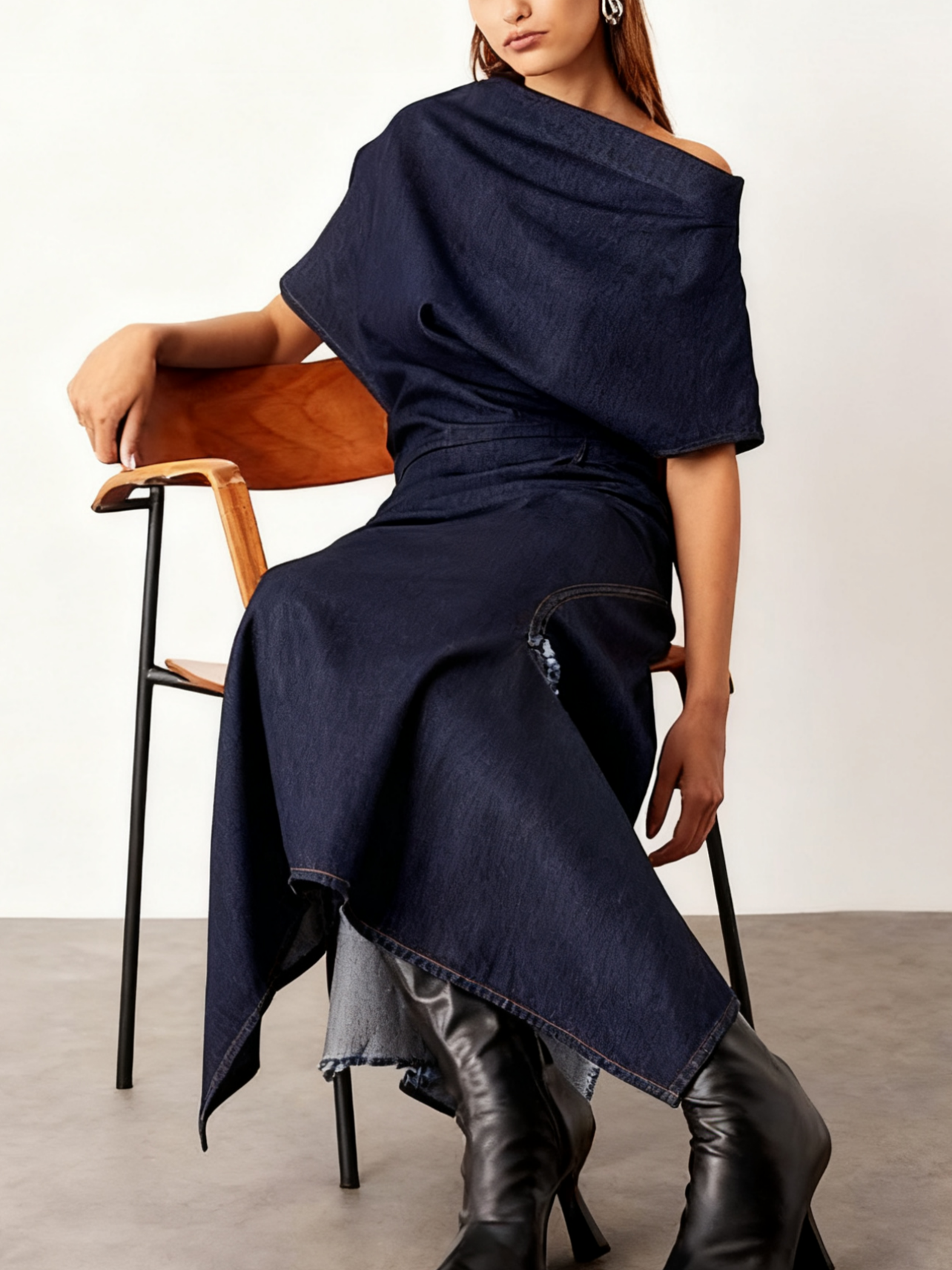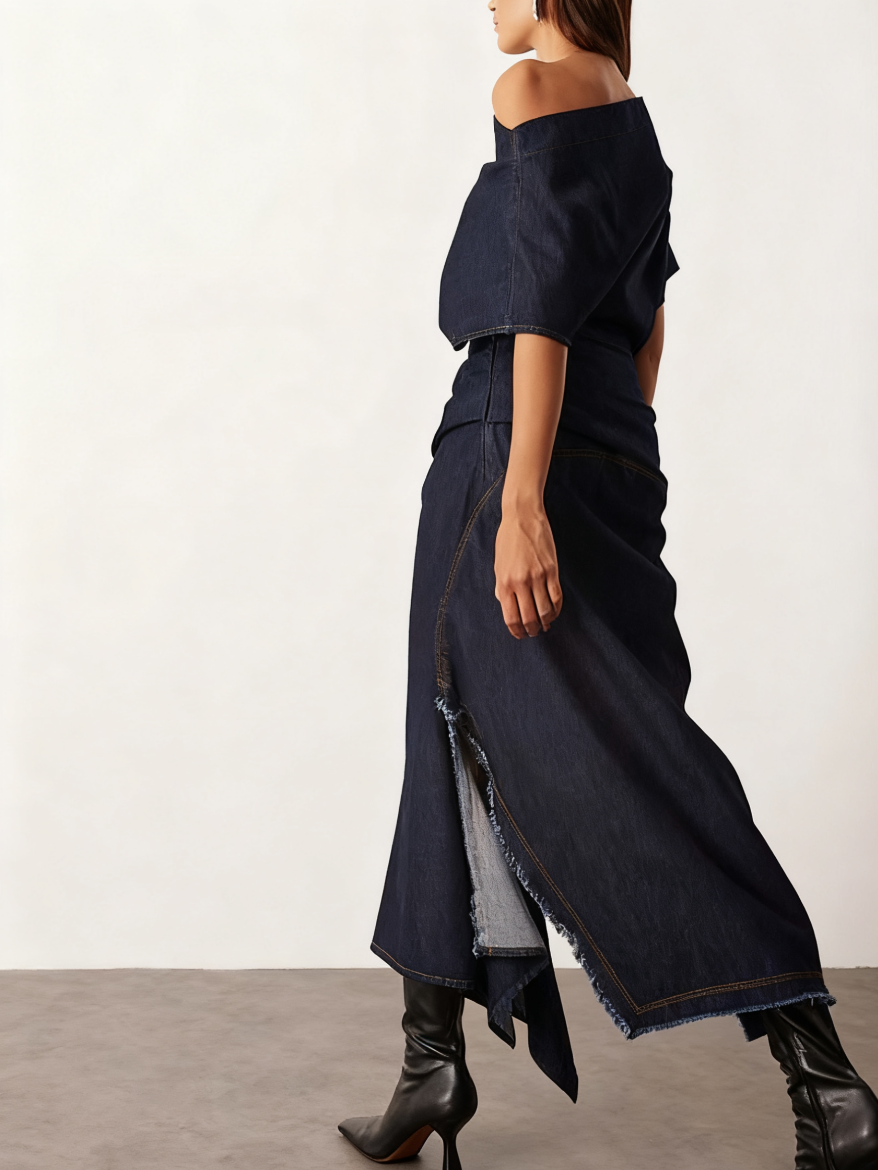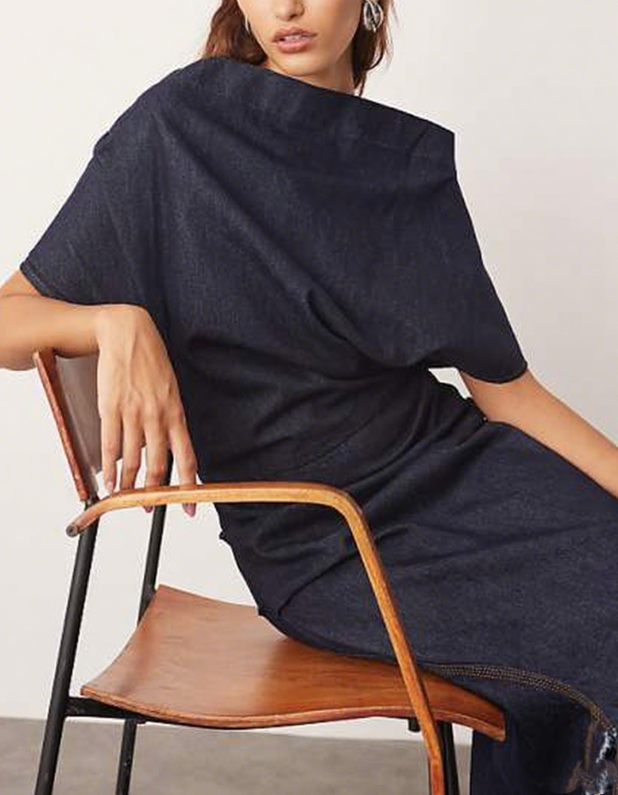 Draped Denim Maxi Dress