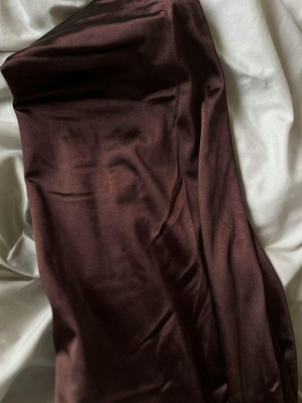 Smooth fabric. Satin fabric. Long design. Straight design. Elastic band. No-button design.