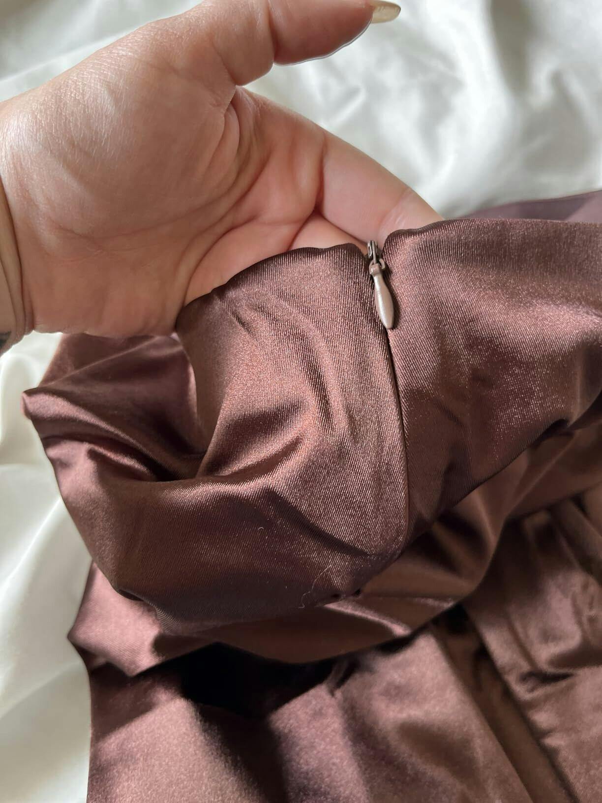 The fabric is surprising. It’s hard to tell in the pictures what’s going on, because it looks like a satin, but when it arrives you’ll see that it’s actually quite stretchy! It conforms to the body much better than satin would. You could do jujitsu in this skirt if you wanted, lol. I think the fit is super flattering, and adds a little sheen to your outfit. You can dress it up and go fancy or dress it fish casually and have the sheen be the pop if interest to your outfit. Very fun skirt! I got the medium and I’m 5’6” and 155 lbs, 43” hips , and it fits me just right. There’s also a side zipper in the waist that makes it even easier to get the shirt on, and easier to tuck your shirt in. Overall a great and stylish piece.