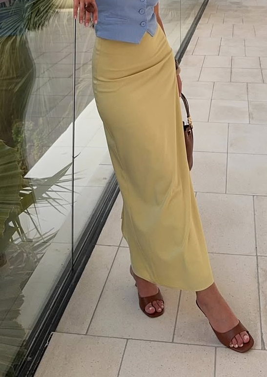 Float through your day with this ethereal skirt that blends Old Hollywood glamour with modern wearability. The flared fish-tail hem creates mesmerizing movement, while the buttery-soft fabric feels like wearing sunlight.