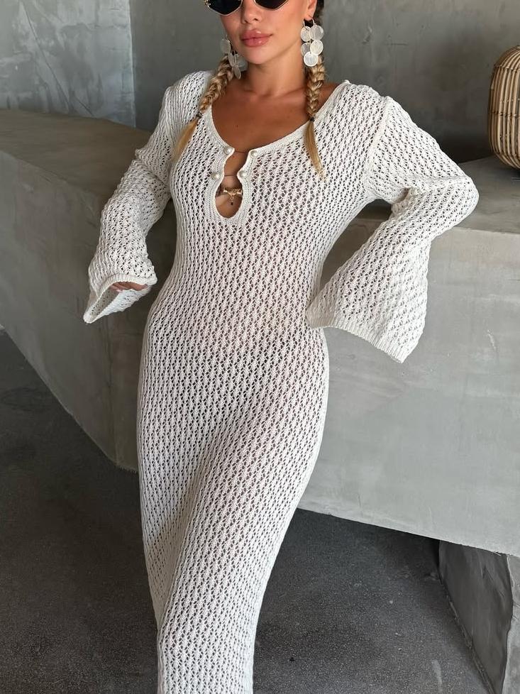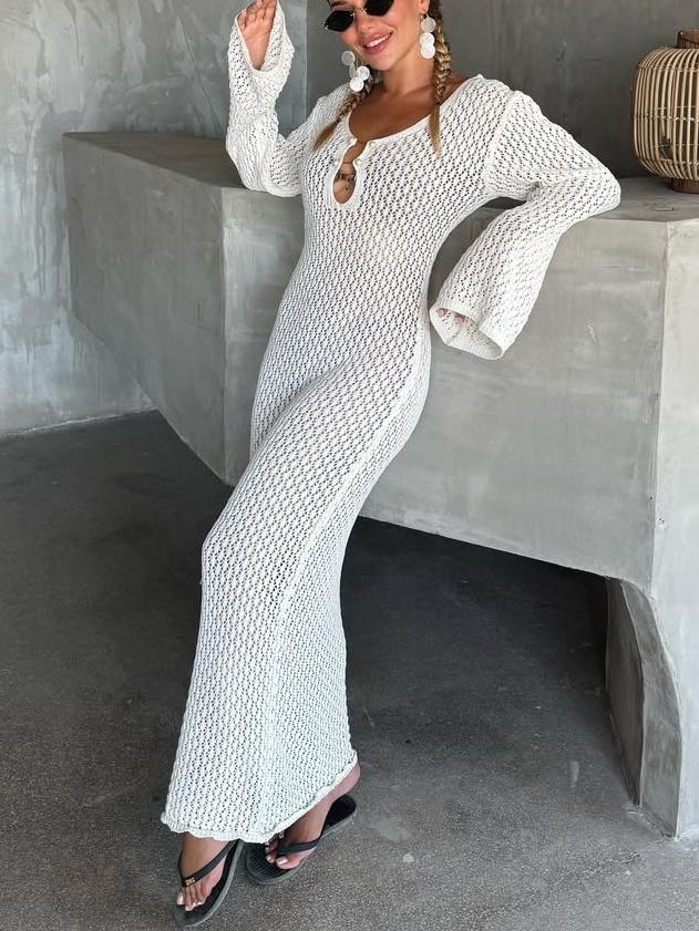 Elegant White Crochet Maxi Dress