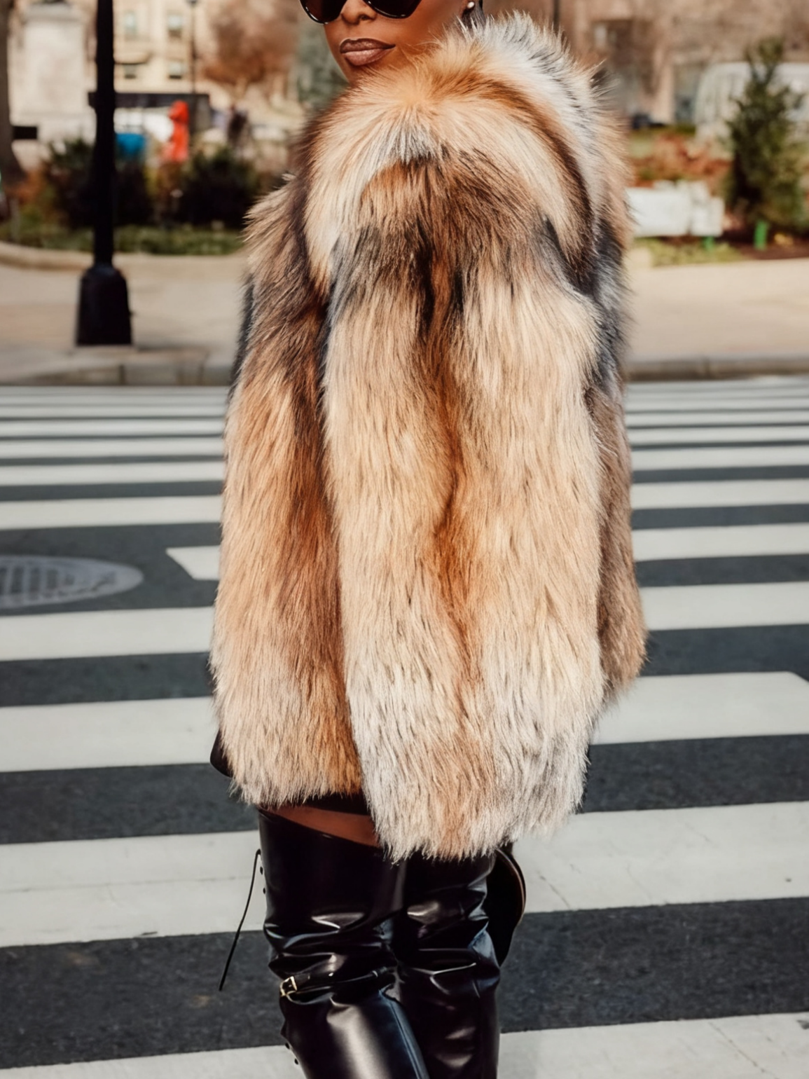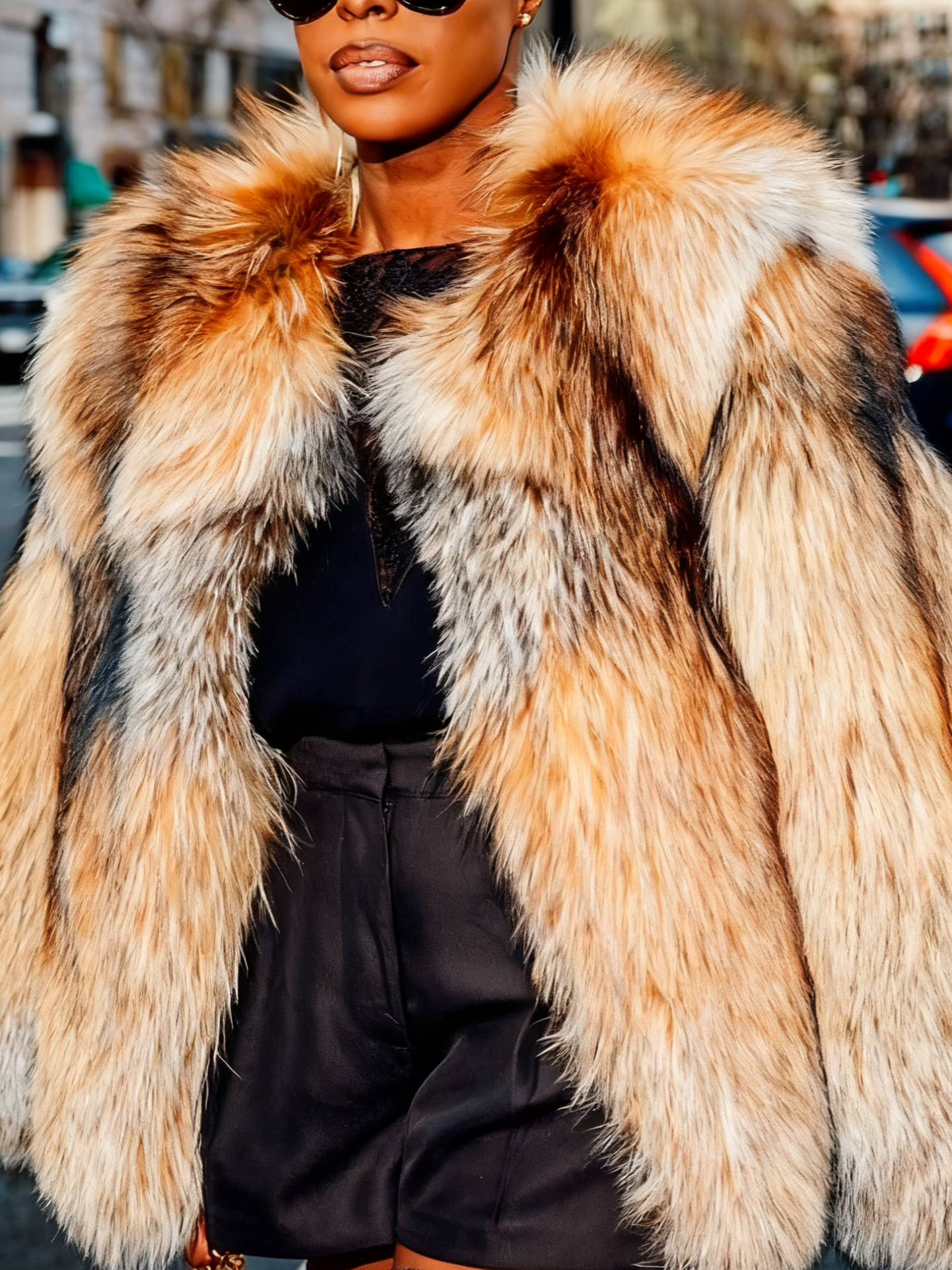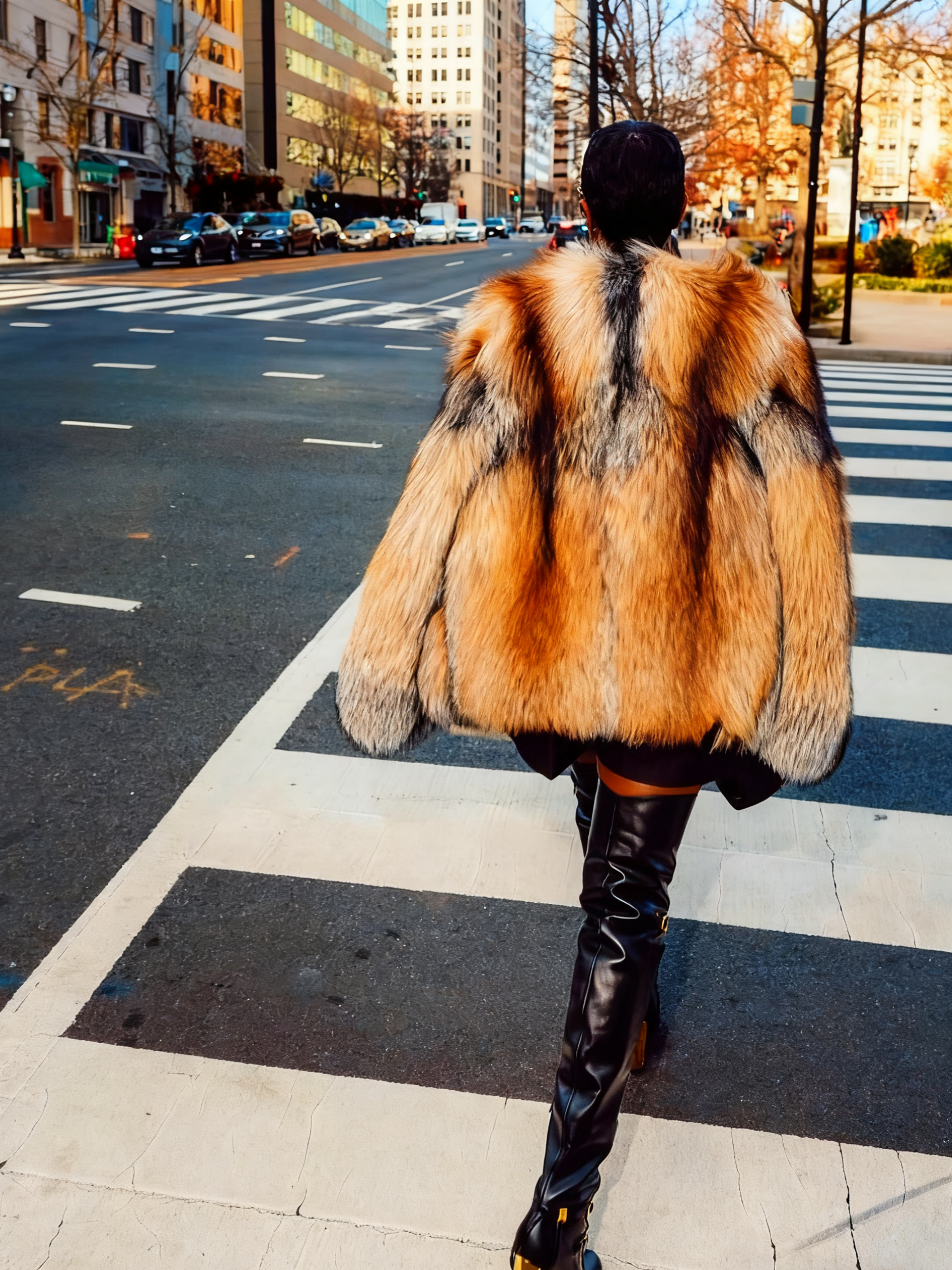 Stay warm, cute, and classy in our cropped fur coat. It features two pockets and hook closure. This fur runs large. Order one size down.