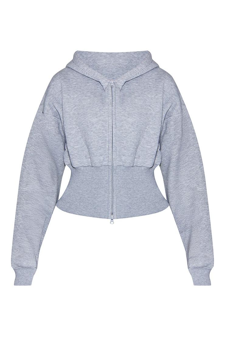 Heather Grey Corset Waist Zip-Up Hoodie & Baggy Sweatpants Loungewear Set