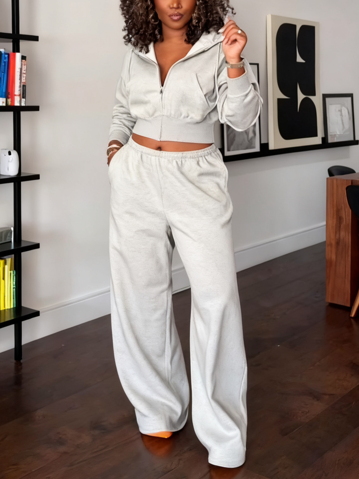 Light Grey Activewear Set: Hoodie with Wide - Leg SweatPant