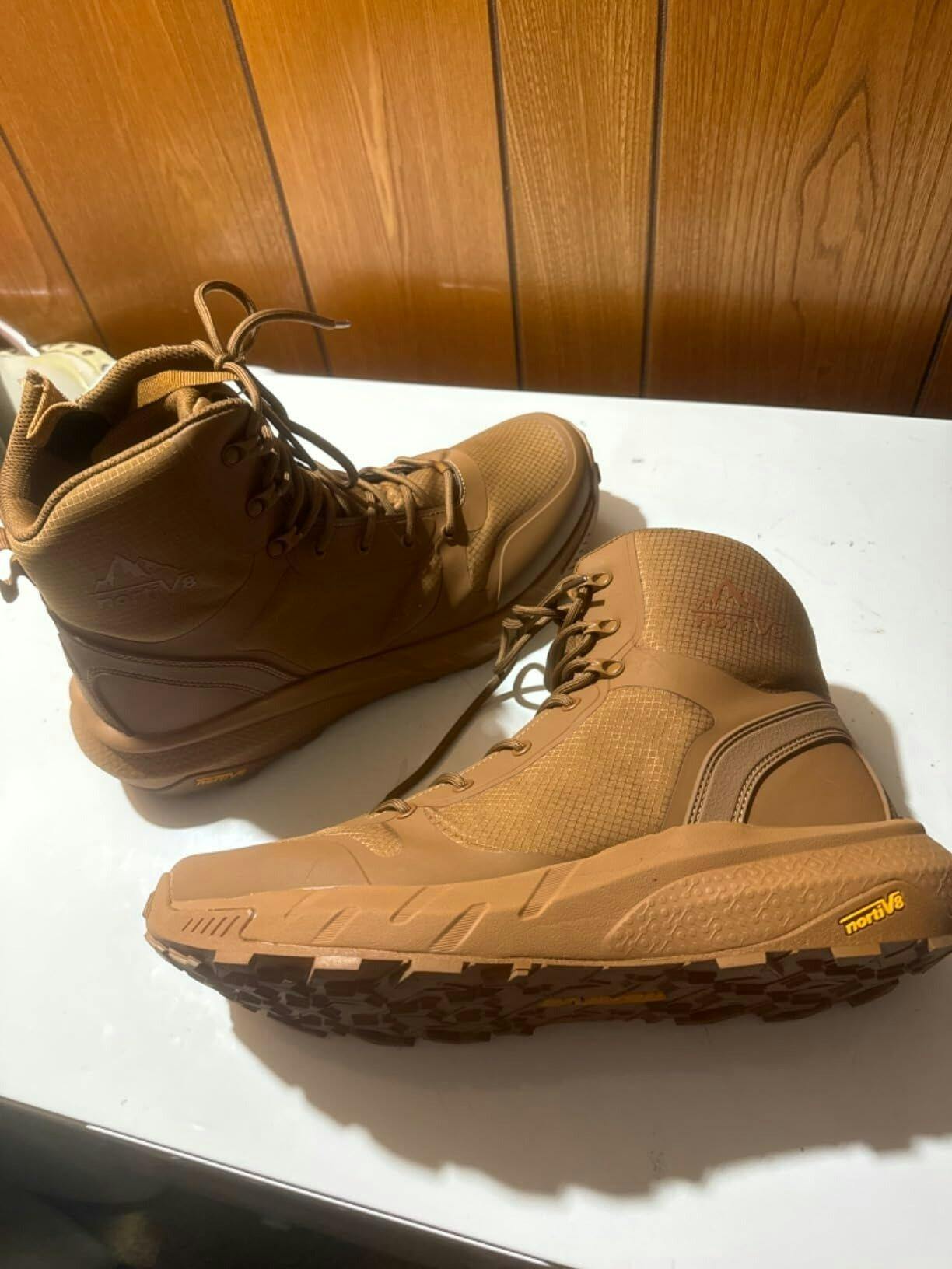 The upper is constructed from a tough, abrasion-resistant ripstop fabric paired with reinforced synthetic overlays, offering long-lasting protection against rough terrain and harsh conditions. A moisture-wicking lining keeps feet dry, while the padded collar and tongue provide cushioning and support for all-day wear.