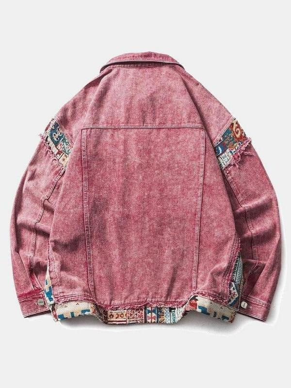 This pink denim jacket with a collar is an absolute eye-catcher! The intricate vintage embroidery designs on the jacket are a testament to the attention to detail put into its creation. The embroidered designs are truly works of art and will undoubtedly elevate any outfit.