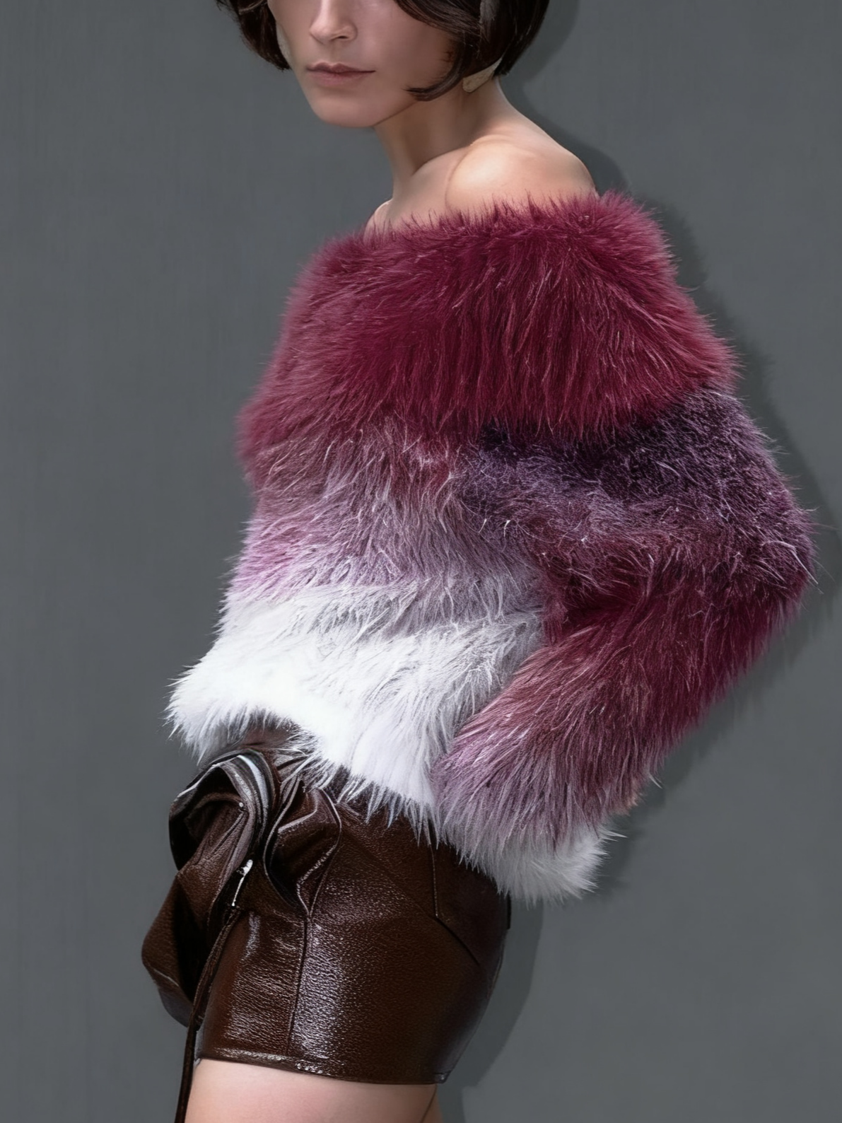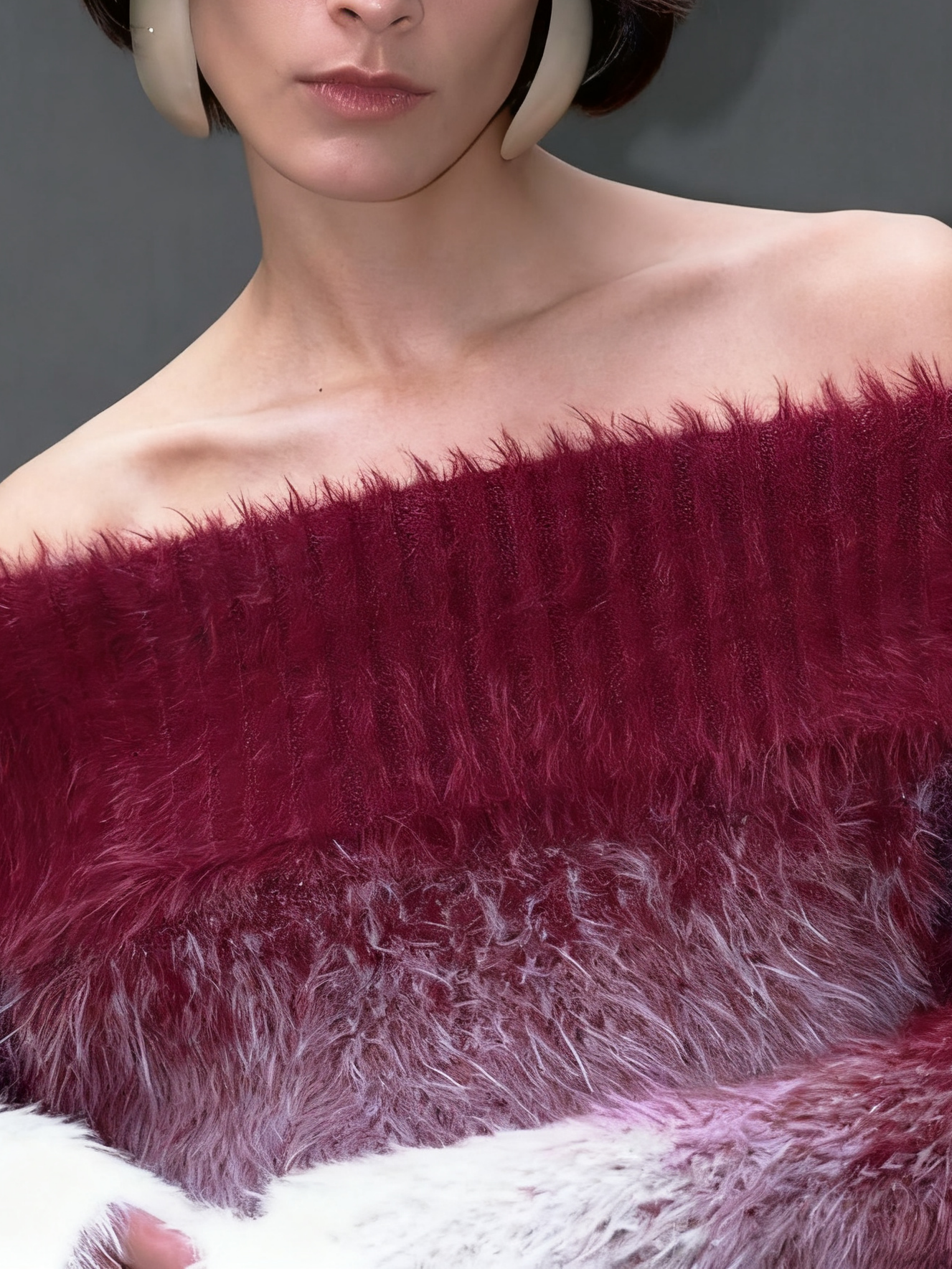 Ombre Fuzzy Off - Shoulder Sweater