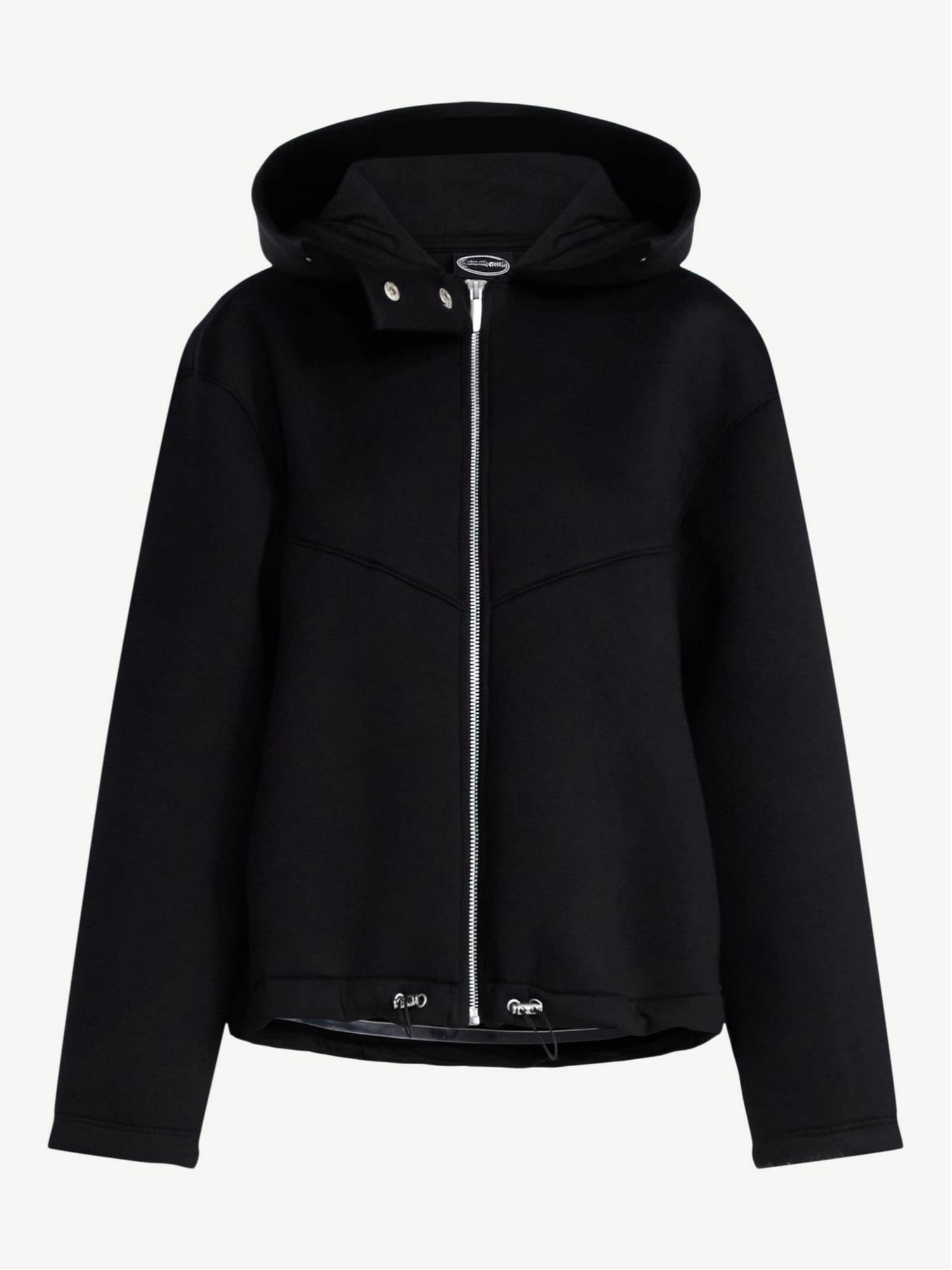 Oversized Scuba Hooded Jacket with Wide Lapel & Drawstring Hem