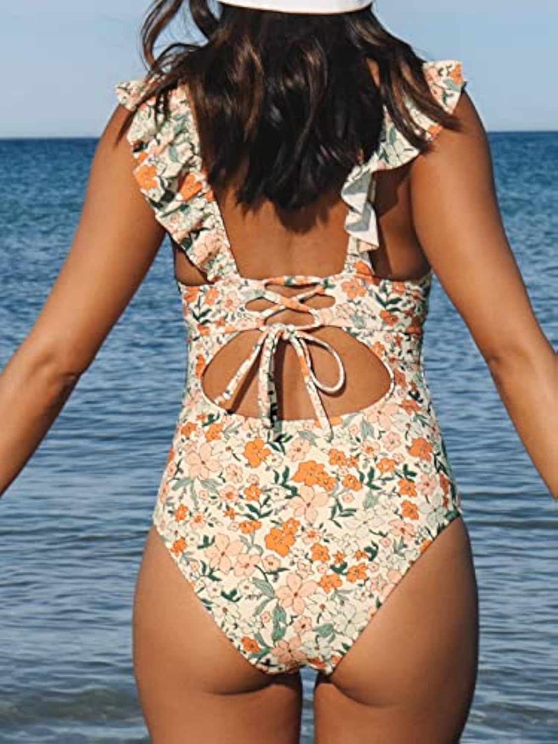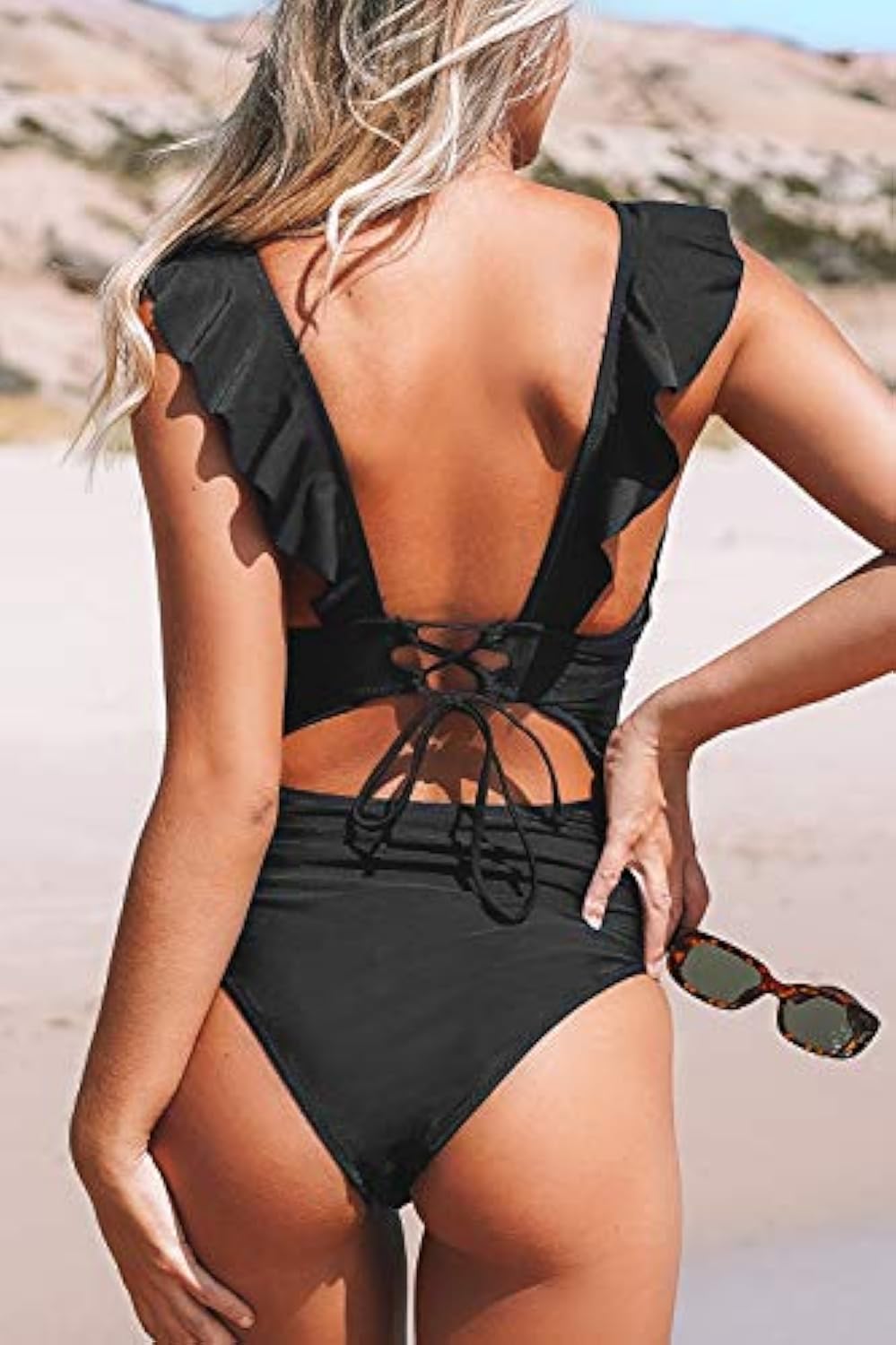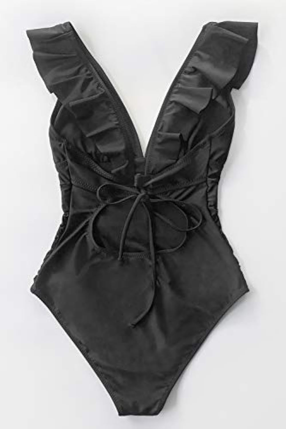 Ruffled One Piece Swimsuit V Neck Lace Up
