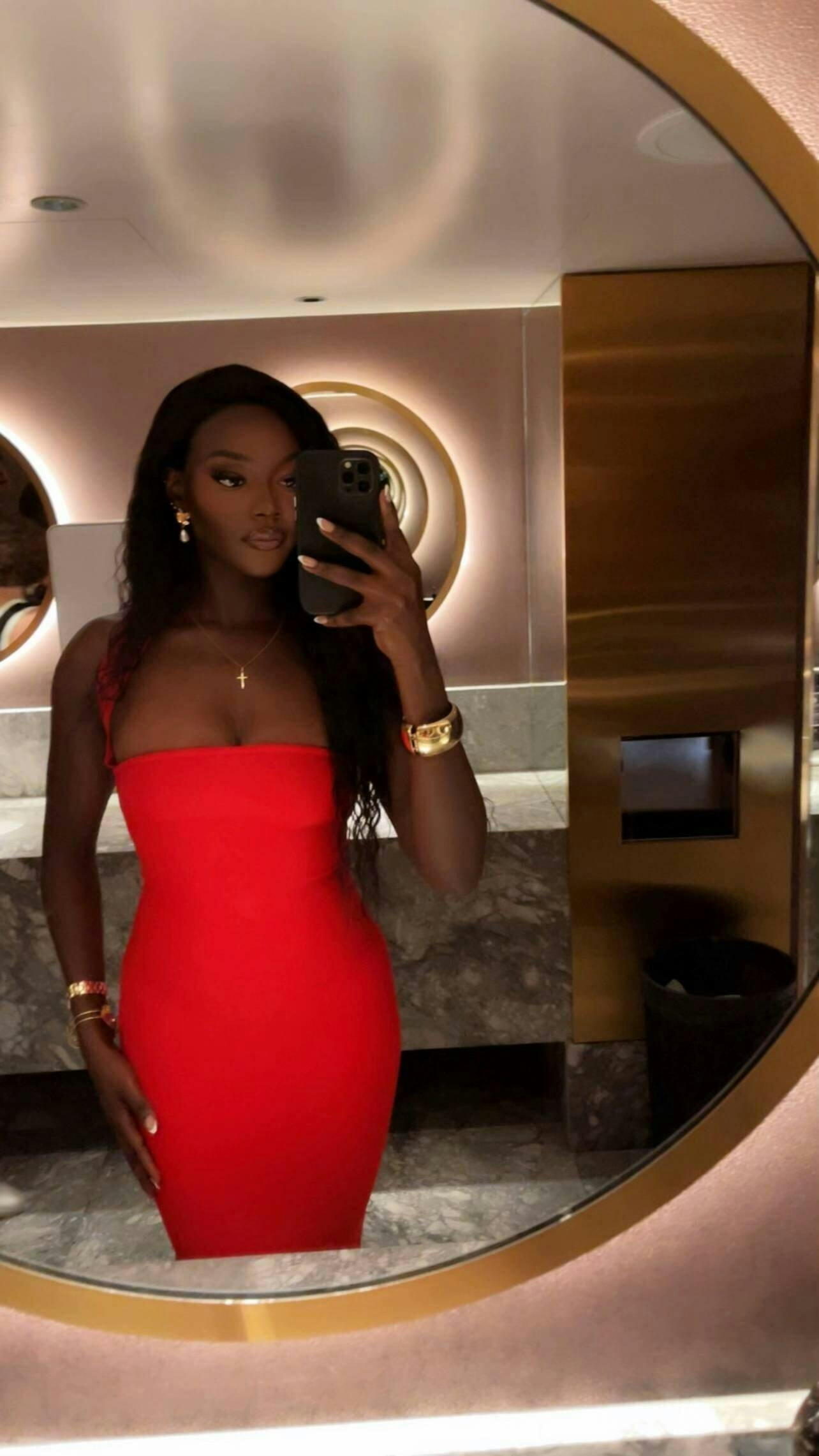 I just got it and the moment i tried it on i fell in love with the dress. ✨️This is all i hoped for and even more✨️: it snatch you without feeling compressed, highlight all the best feature of your body, the material is thich and strechy and the rich red color can compliment every skin color but especially darker complexions (my fellow ebony queen this is a must!😍) I'm super satisfied. Cannot wait to wear it on holidays and occasions!!! if I can edit this I'll put some photos later on. Thx sl!❤️