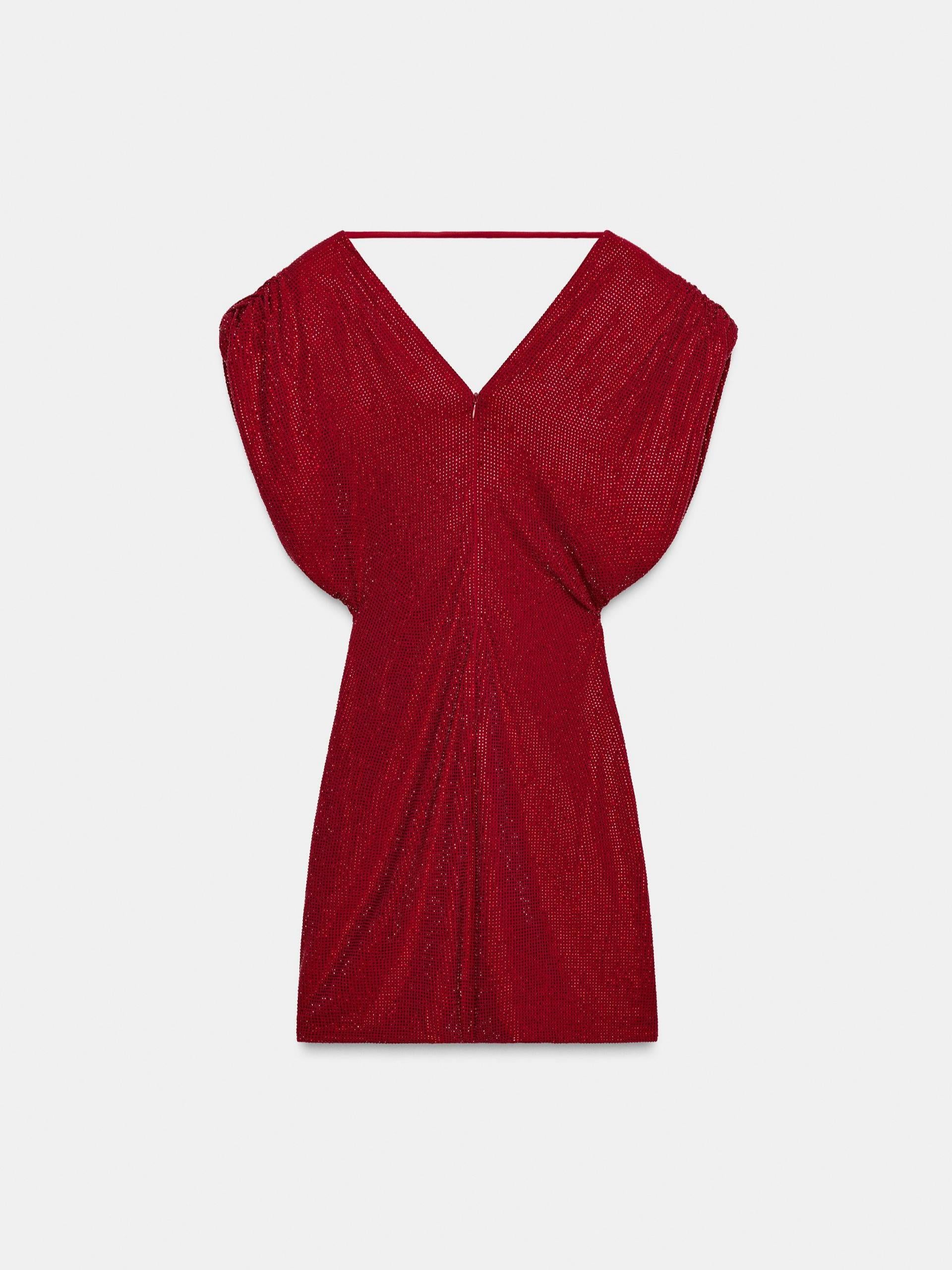 Every inch of this dress is covered in tiny, shimmering burgundy sequins (affixed to a soft, stretchy lining), creating a head-turning, light-catching effect that dazzles from every angle. The draped cowl neckline falls into a deep V shape, adding a touch of old-Hollywood elegance, while the voluminous gathered sleeves frame the shoulders for a dramatic, statement-making silhouette. The bodycon mini skirt hugs your curves to highlight your shape, balancing bold sparkle with a streamlined, party-ready fit.