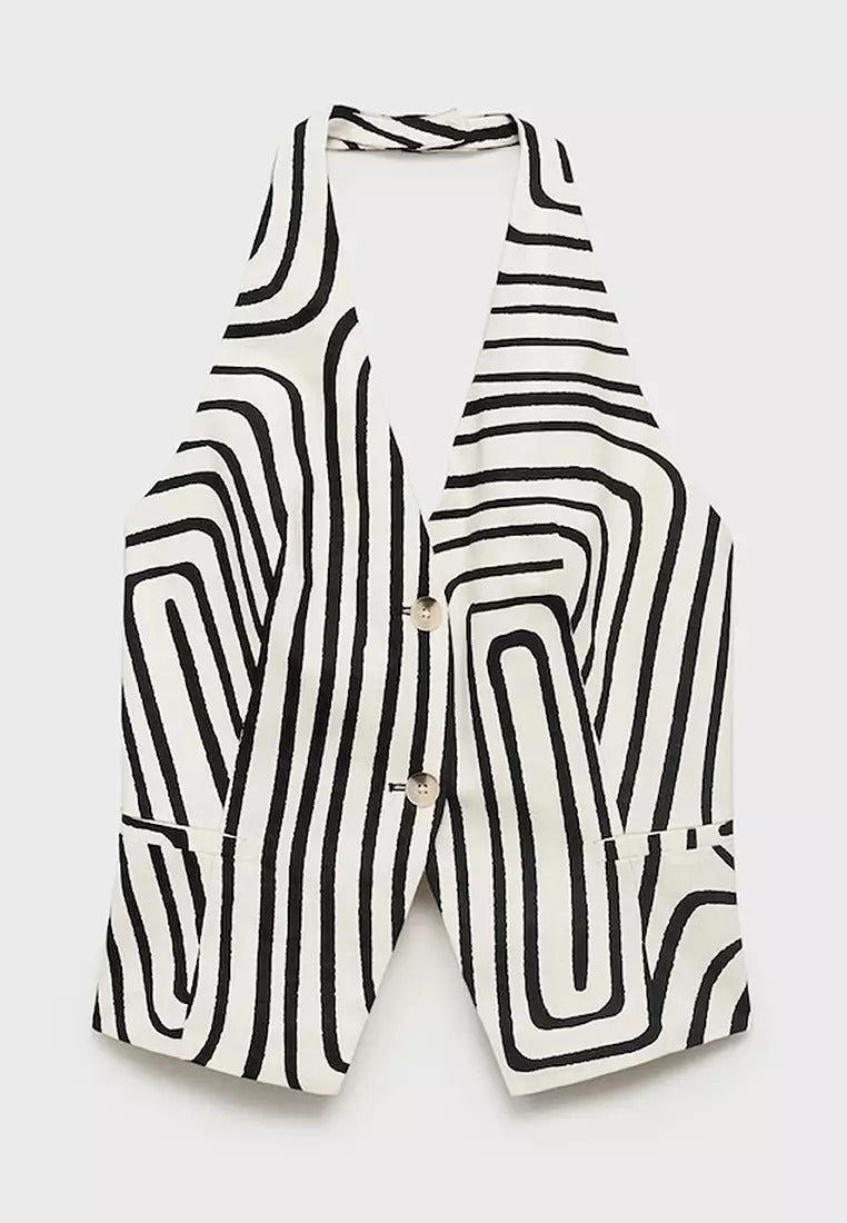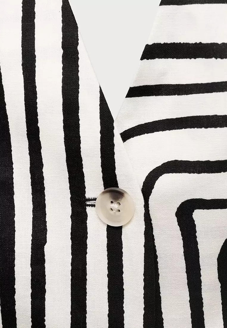 Unleash your untamed side in this head-turning backless tank, where deep V-neckline meets Geometric - Print stripes on ultra-breathable linen-cotton blend. The adjustable back tie and open-back design ensure maximum airflow, while the 55% linen 45% cotton construction gets softer with every wear.