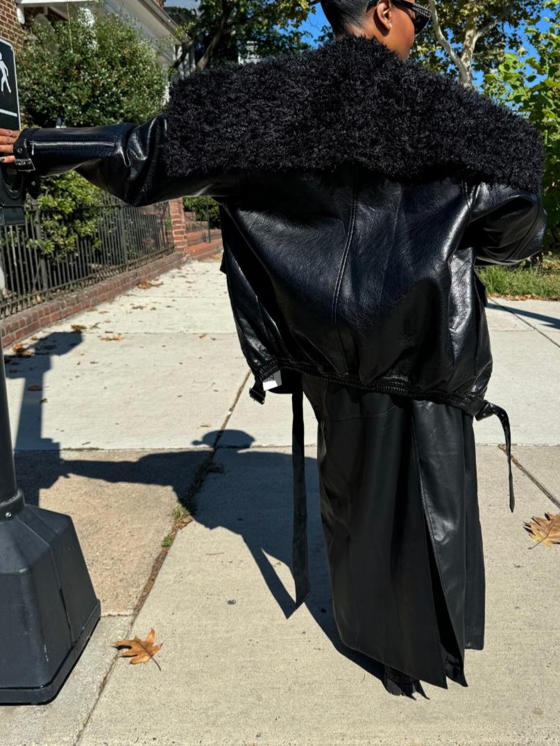 I love this jacket — looks like way more expensive than it was. I always get compliments on it. It sheds a little to the underneath layer but not too bad. I got a M instead of my normal S for an oversized look. I’m in my second season with it and really don’t see signs of wear.