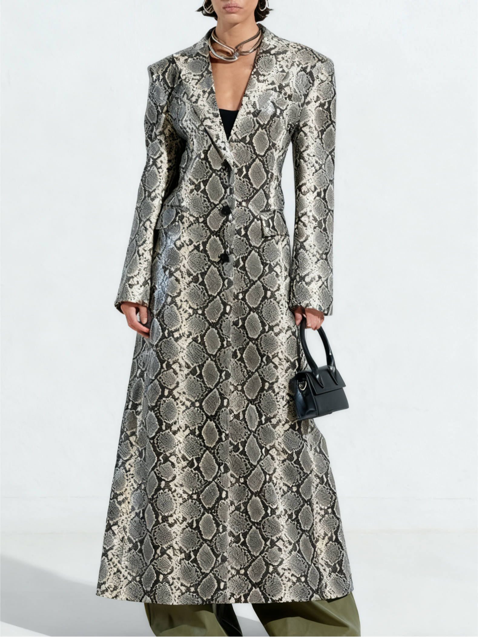 Snake-Print Long Coat