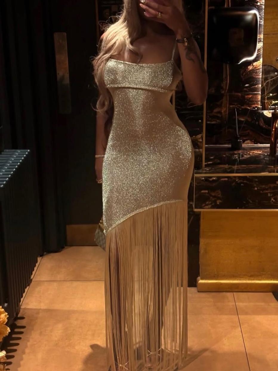 Sparkly Fringe Sleeveless Bodycon Maxi Dress