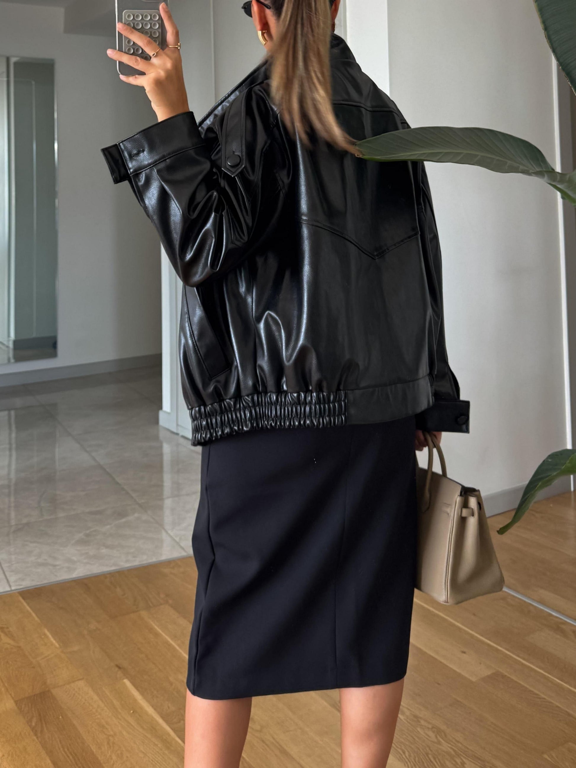 Jacket with a stand-up collar and long sleeves with tab detail on the shoulders. Side pockets. Contrasting lining. Zip-up fastening with a snap-button placket on the front.