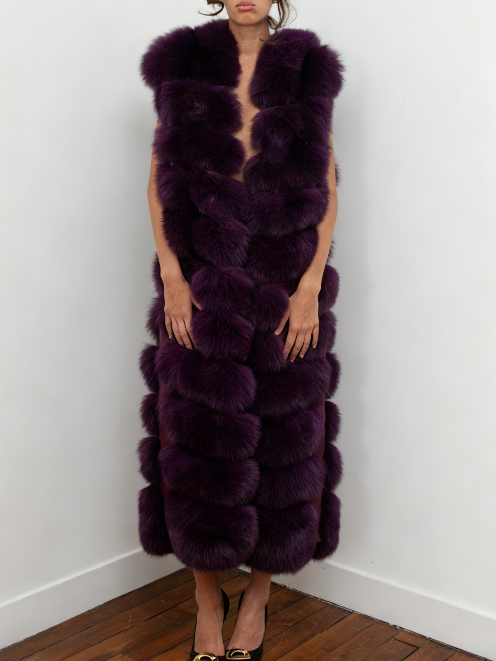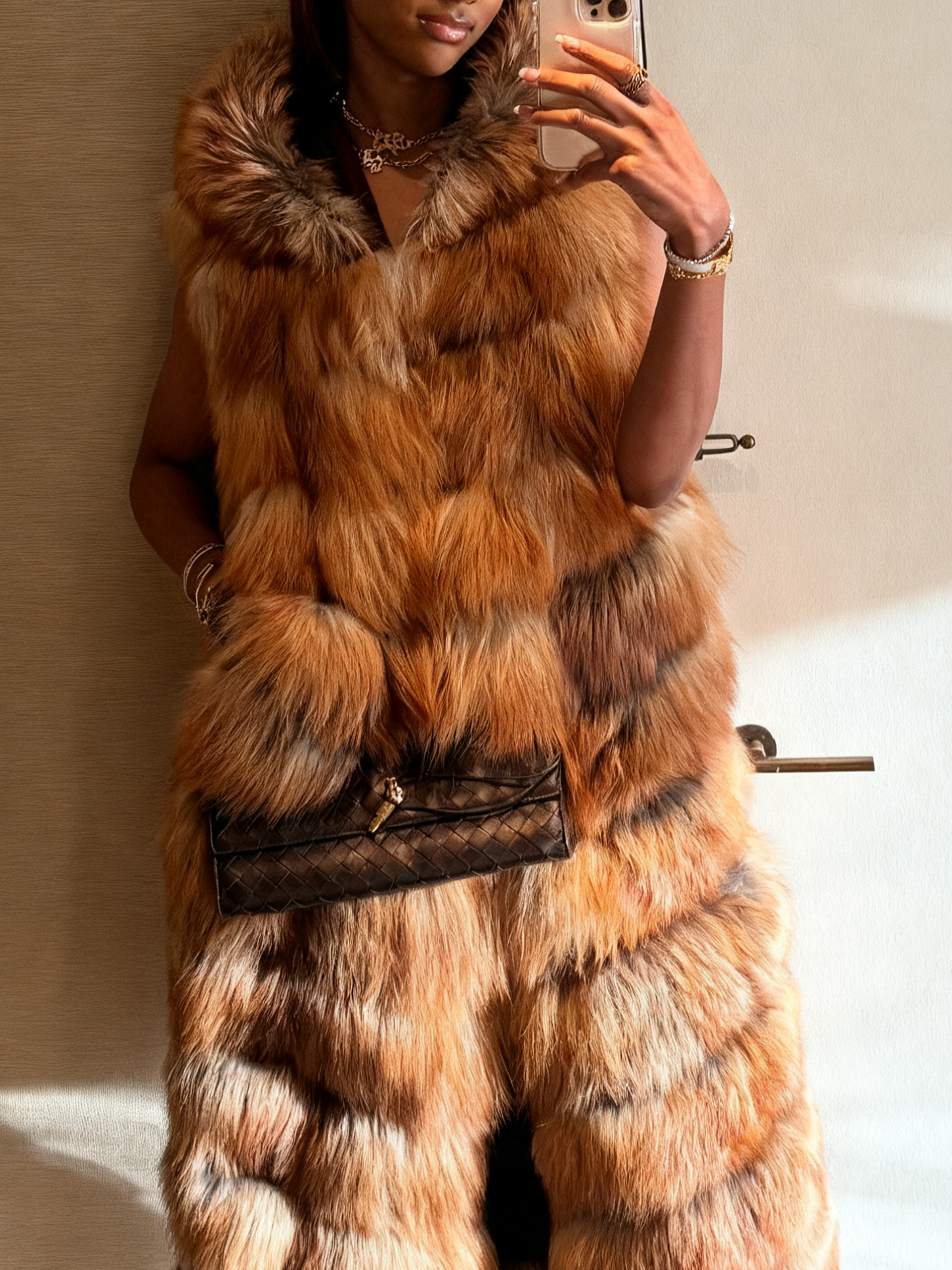 This full length vest is the perfect fashion statement for those seeking a dramatic and bold look. Made with faux fox fur, it exudes sophistication and style. A favorite of Mary J Blige , this coat is sure to turn heads and leave a lasting impression.