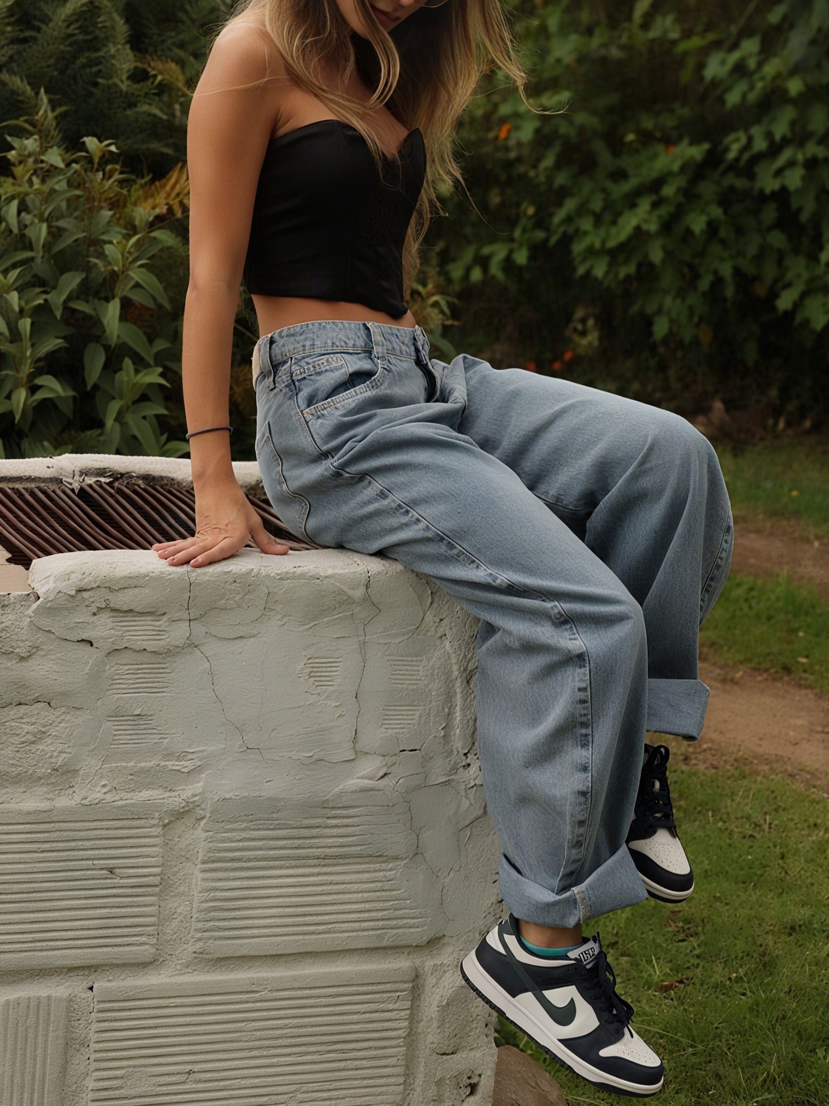 Meet your new wardrobe staple: the Skyline Wide-Leg Denim pants in a fresh light blue wash. Designed for the modern woman who values both style and ease, these ultra-long, wide-leg pants offer a fashion-forward silhouette that doesn’t compromise on comfort. With their versatile cuff-able hem, you can customize your look in an instant—rock them full-length for a dramatic flair or roll them up for a casual, polished vibe. Perfect for all seasons and all reasons.