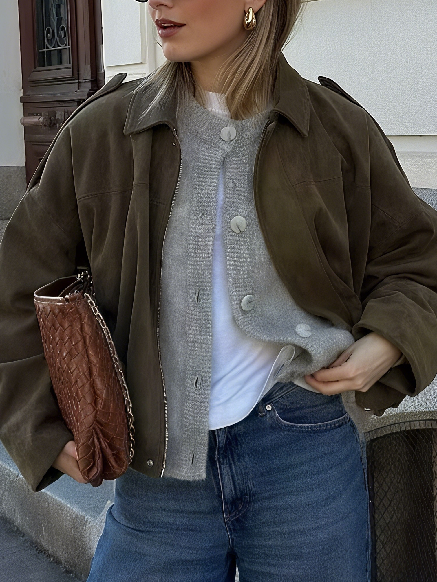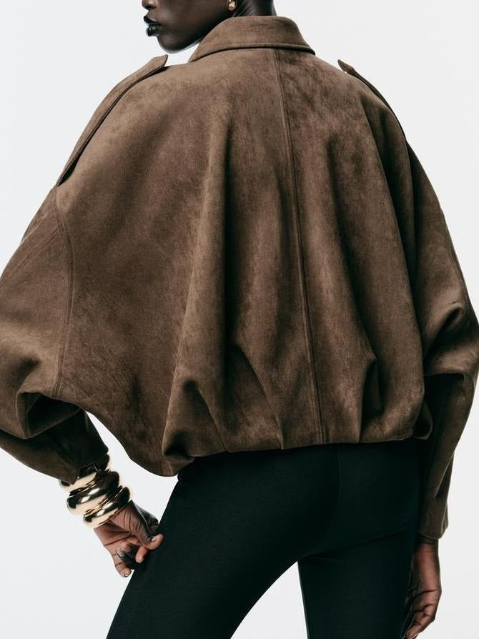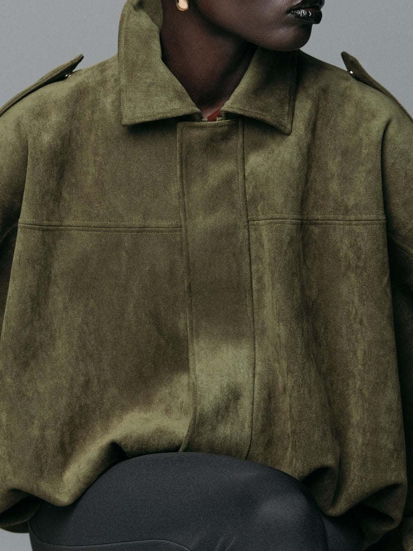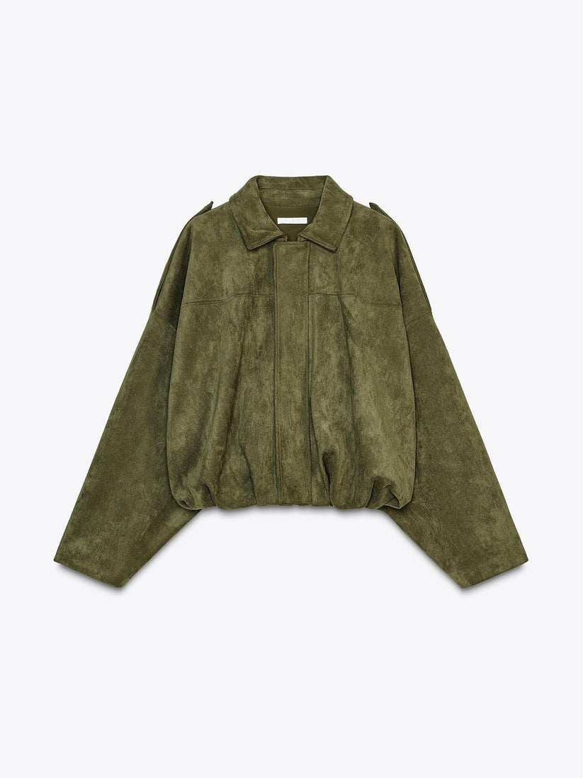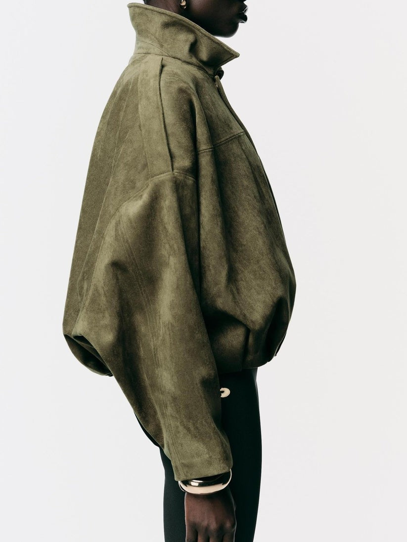 Channel effortless cool with our pilot-inspired bomber jacket, cut in a relaxed oversized silhouette for that just-thrown-on vibe. The faux suede fabric delivers luxe texture without compromise, while the full-zip closure keep it sleek and versatile.