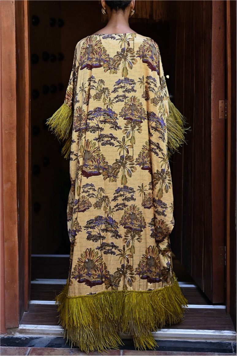 Tropical Oasis Fringe Kaftan Maxi Dress