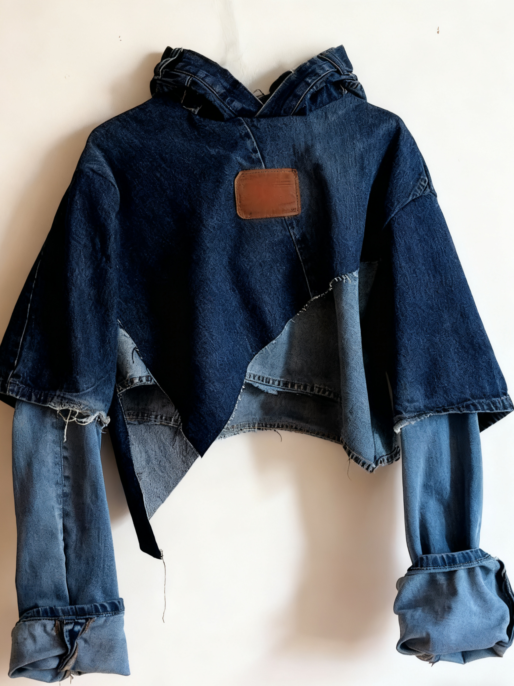 Whitney This upcycled denim hoodie is absolutely amazing! The patchwork design is so unique and stylish. It feels like a one-of-a-kind piece that gets tons of compliments every time I wear it.
