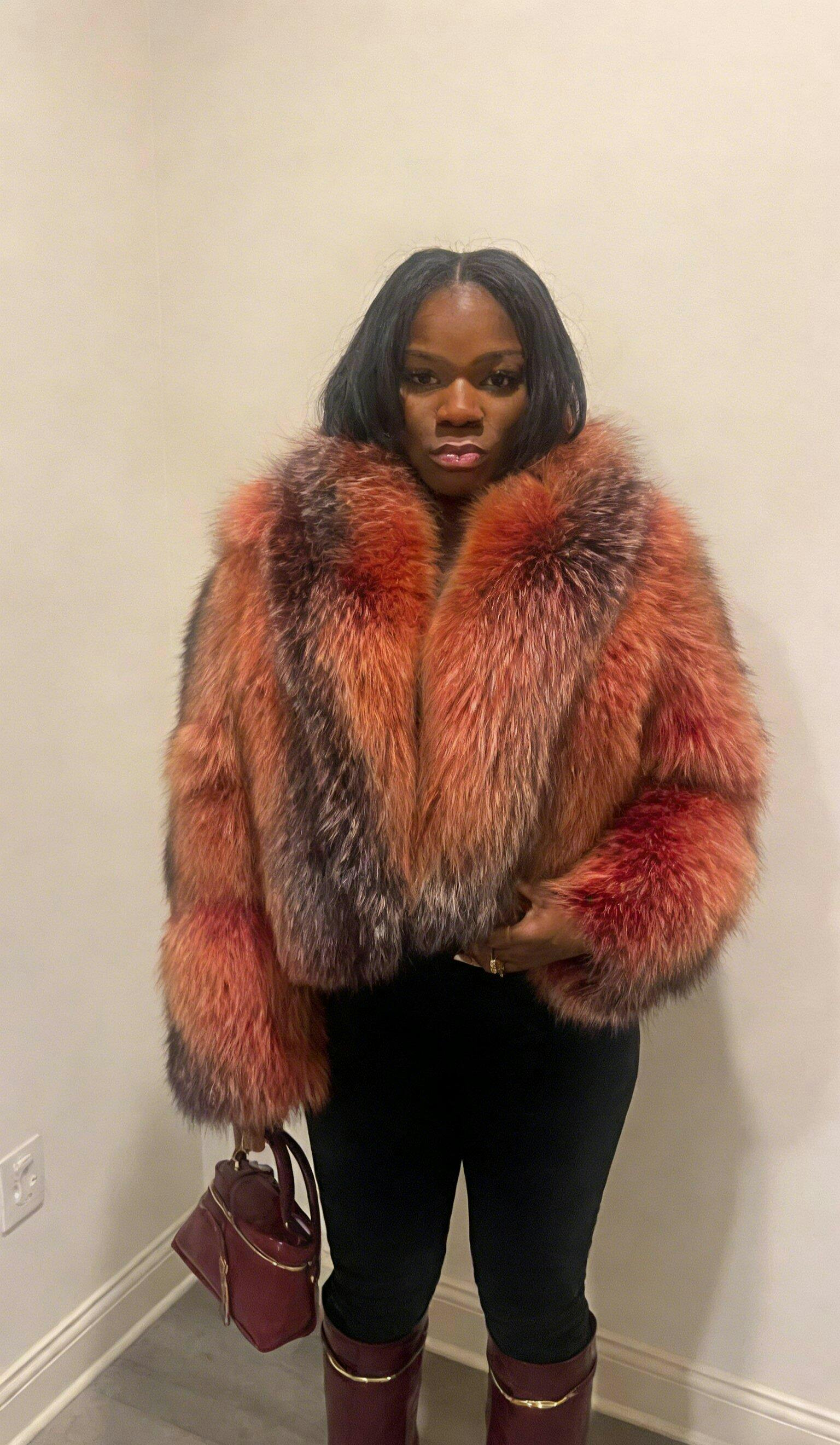 Luxury meets modern edge in this cropped fox fur jacket, dyed to perfection in a radiant red —a refined, elevated neutral that pairs seamlessly with your wardrobe. Designed with a hook closure and two side pockets, this piece delivers both function and effortless glamour.