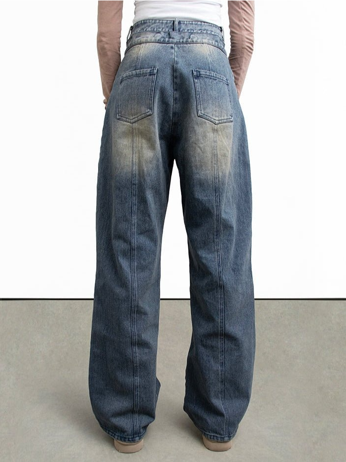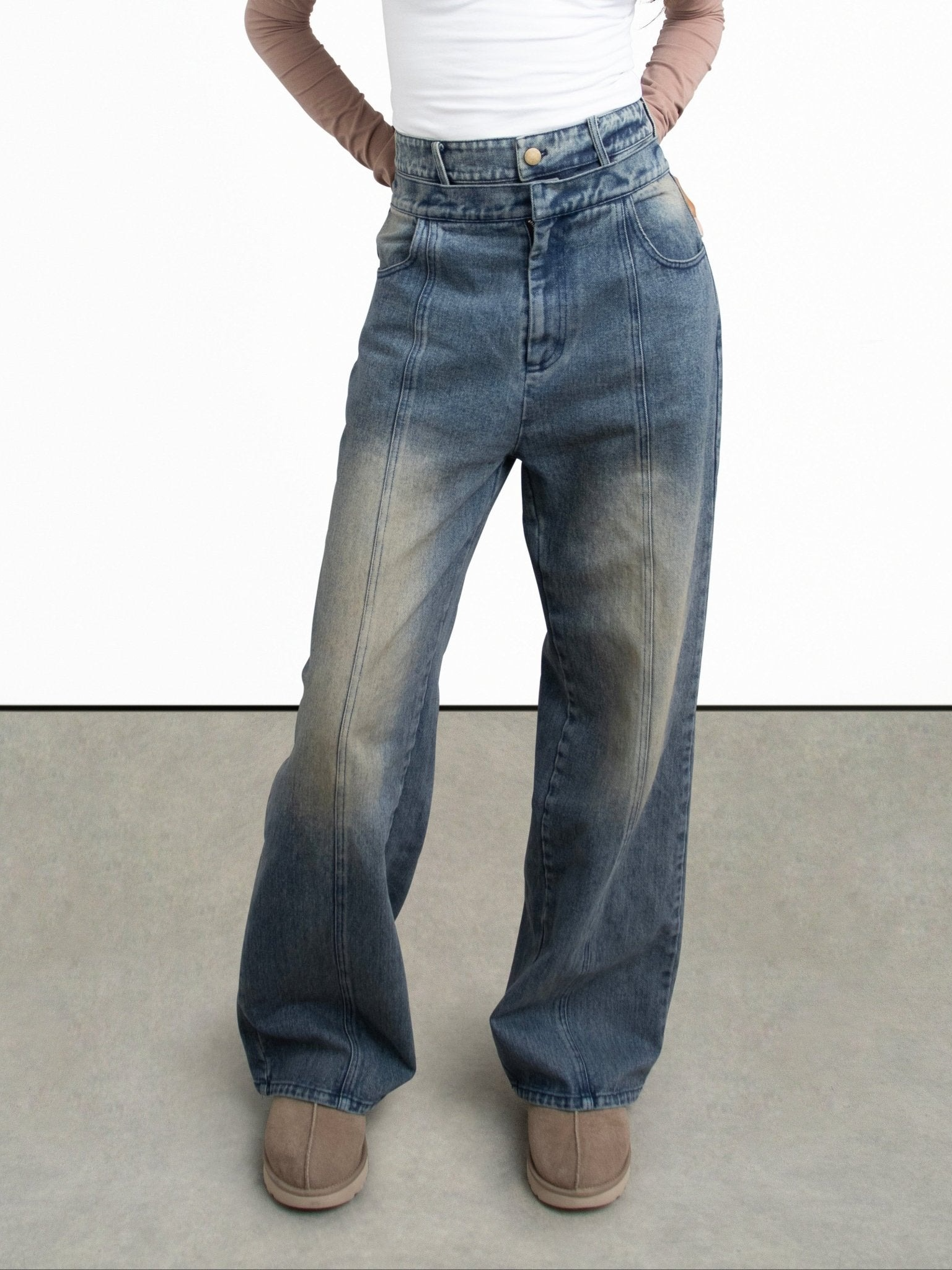Vintage Washed High - Waisted Wide - Leg Jeans