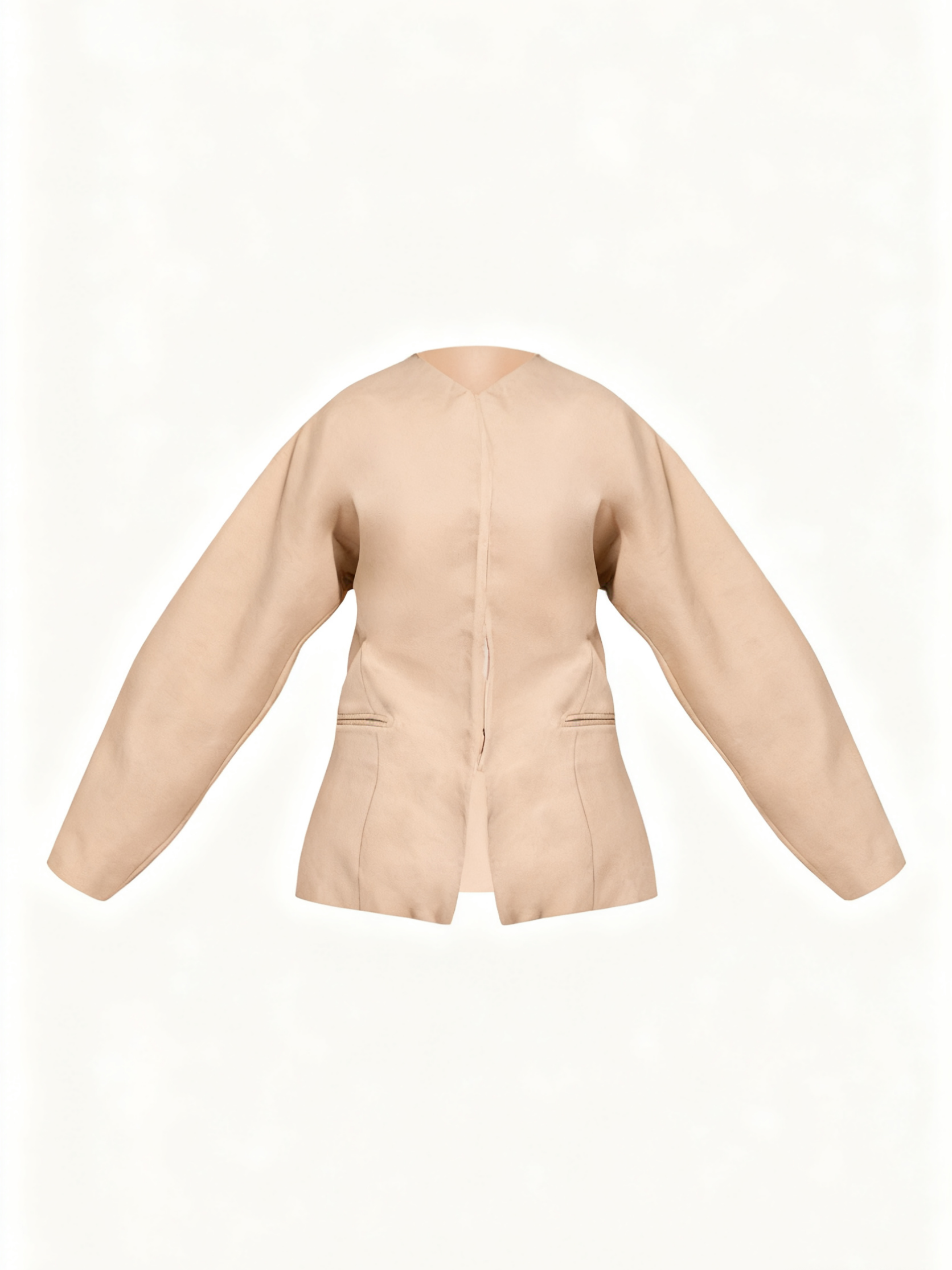 Made from a premium sand woven fabric with a collarless neckline and structured fit, it brings sleek sophistication to your wardrobe.
