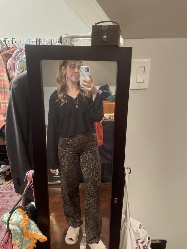 This head-turning set pairs a sheer, stretch-mesh turtleneck with a classic leopard print, offering a hint of allure while maintaining a sleek, polished look. It’s matched with high-waisted, baggy cargo pants featuring the same iconic leopard pattern, creating a cohesive, statement-making outfit that balances feminine edge with tomboy cool. The lightweight mesh fabric keeps you comfortable all day, while the durable cotton-blend pants feature functional side pockets for practicality.
